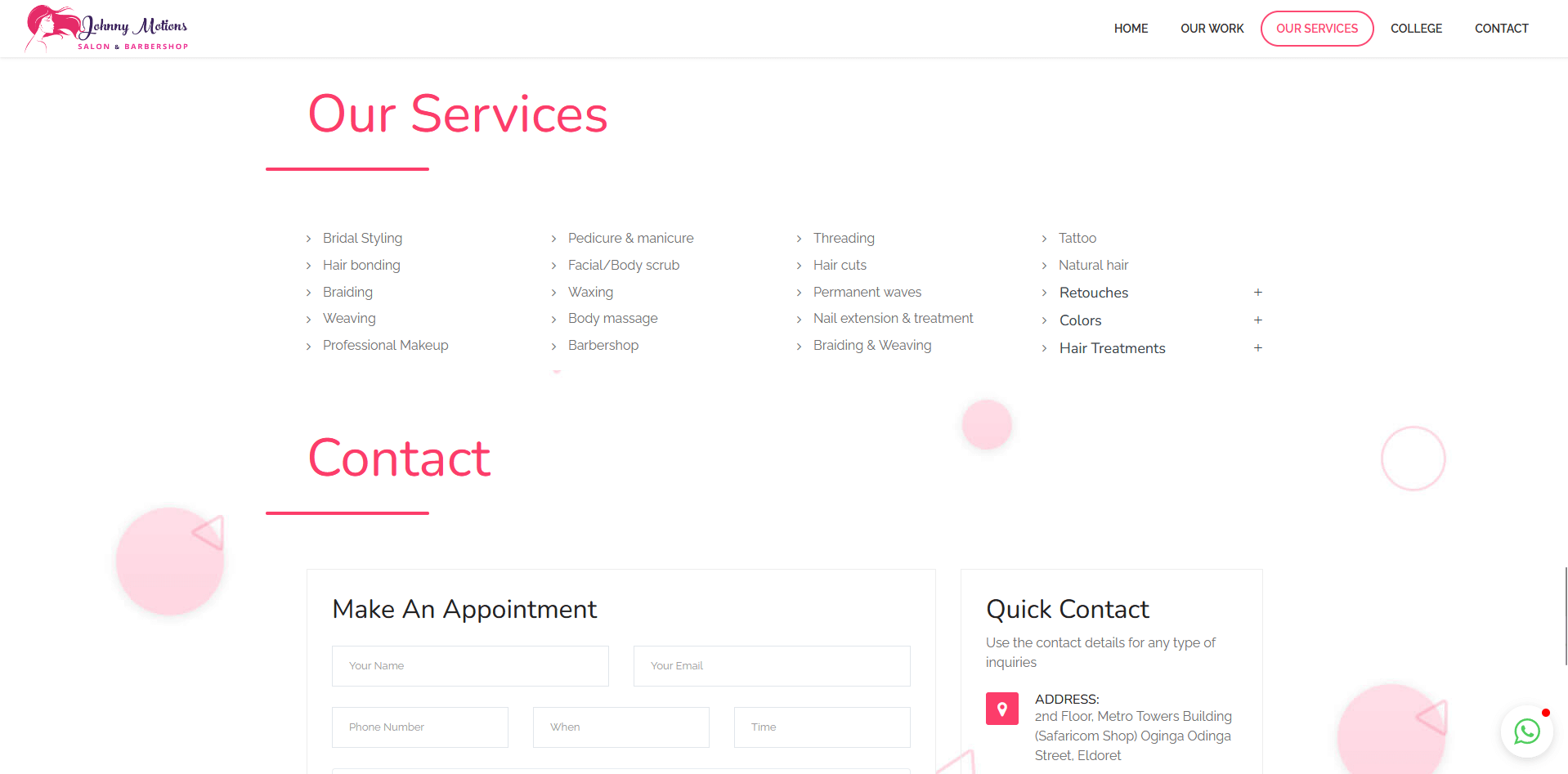 JohnnyMotions is a local barbershop that offers a range of grooming services, including haircuts, shaves, and beard trims. The owner recognized the importance of having an online presence and approached a software development team with the goal of creating a website that would attract new customers and improve the overall customer experience.