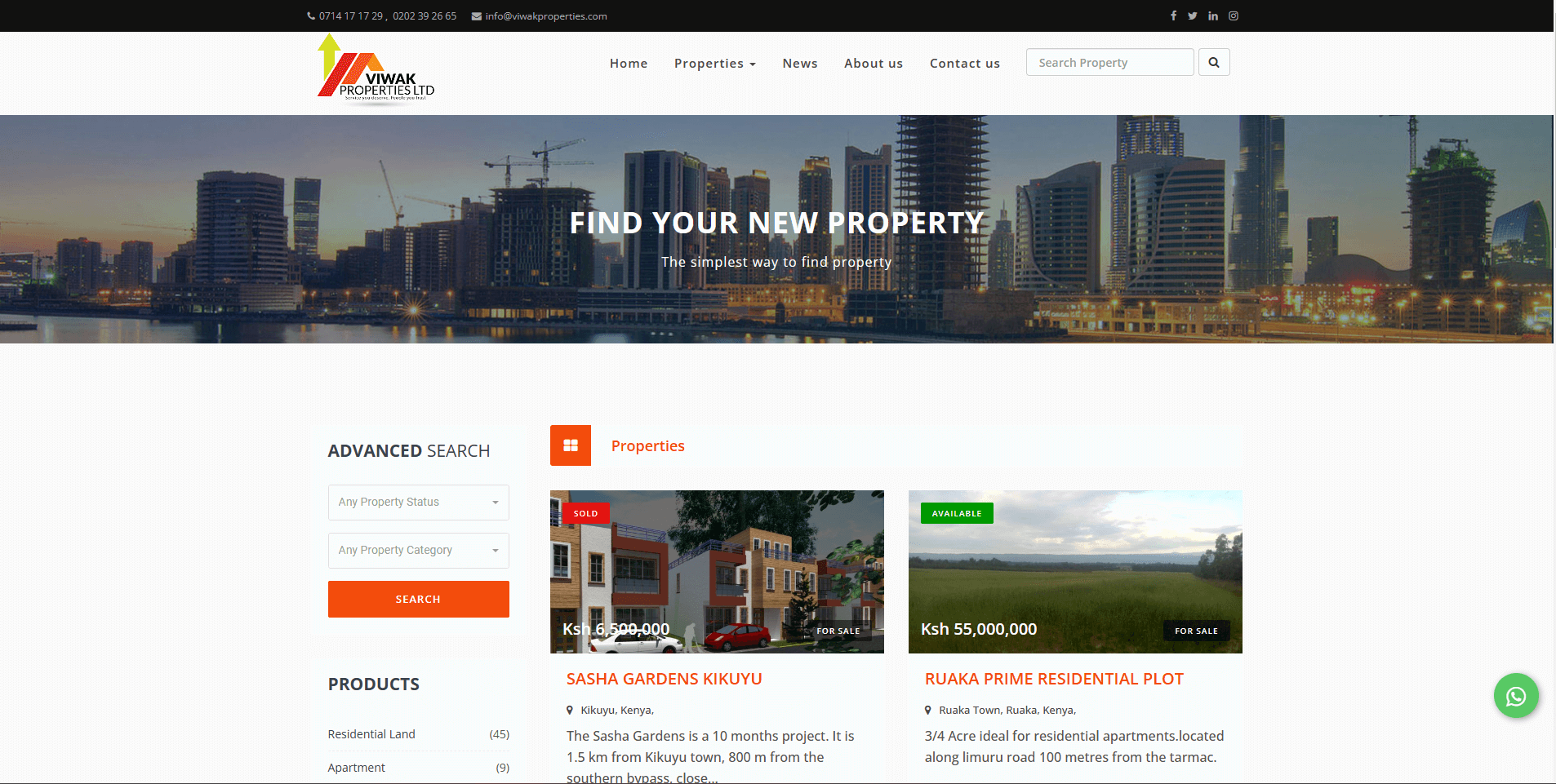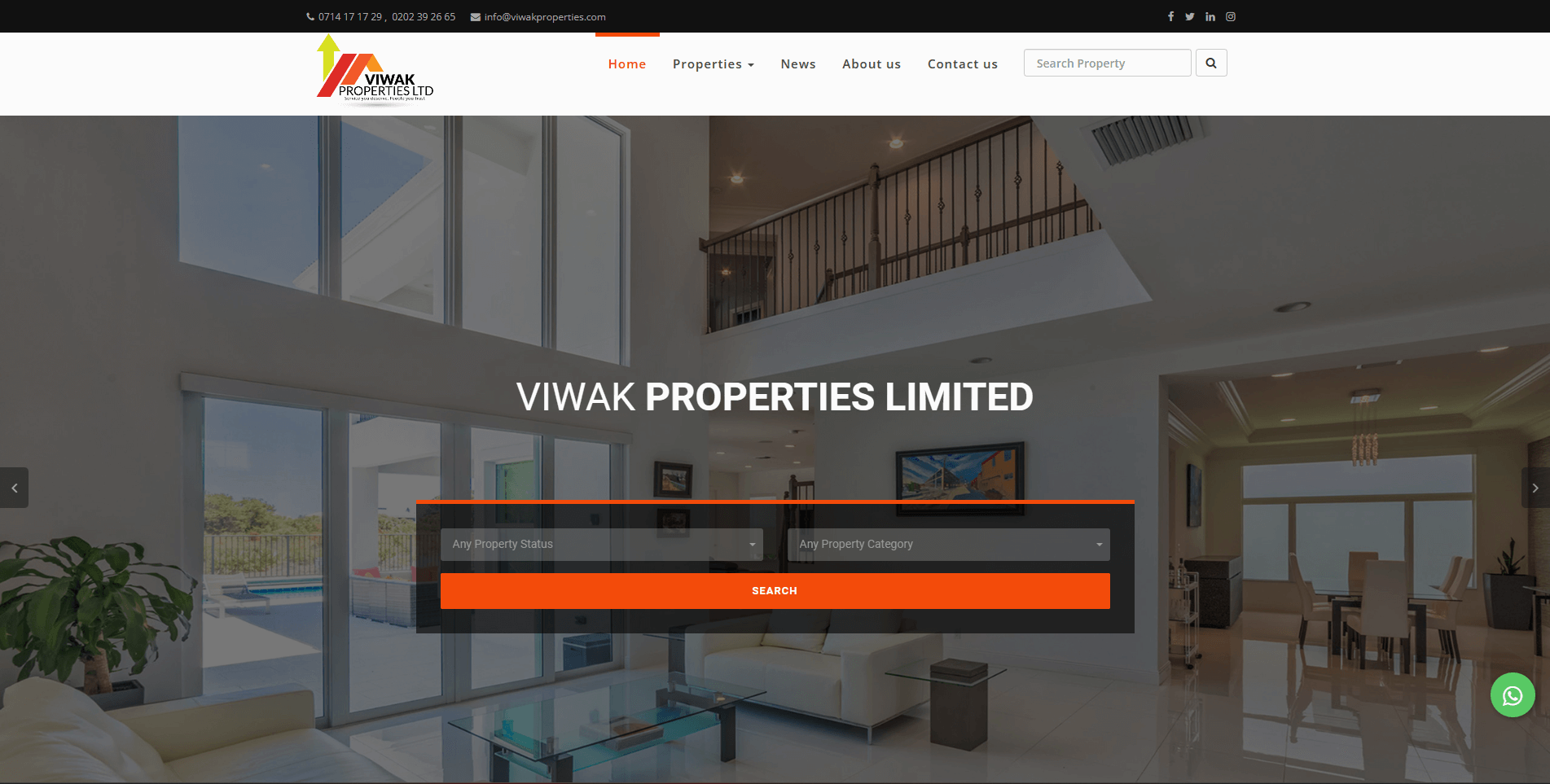 Viwak Properties, a real estate firm that provides project management, property valuations, real estate consultancy, and development services. The firm's main goal was to create a website that would showcase its services and provide customers with a user-friendly platform to engage with the firm's offerings, including properties for sale and lease.